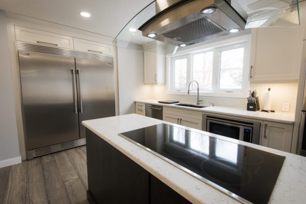 Background: Jacky and Derek have lived in the house since the early 90’s. The home included a typical oak trim package, and original kitchen that included an island with a raised eating bar. The sink was located in the island and the raised eating bar encroached on the counter space. This made for an awkward…